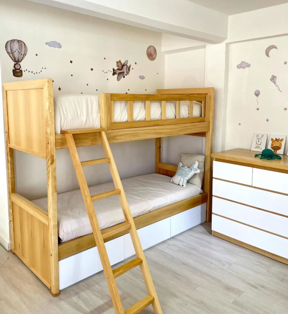 Estructura fabricada en madera maciza de guatambu, cajones con guias telescopicas