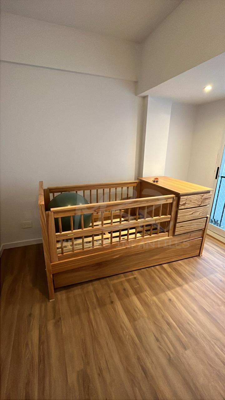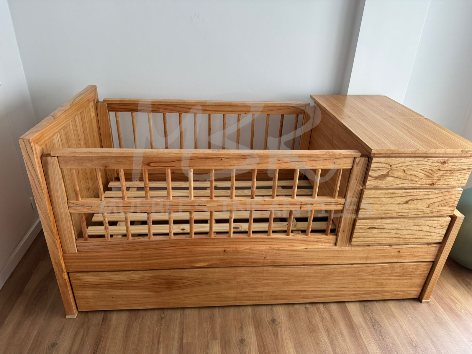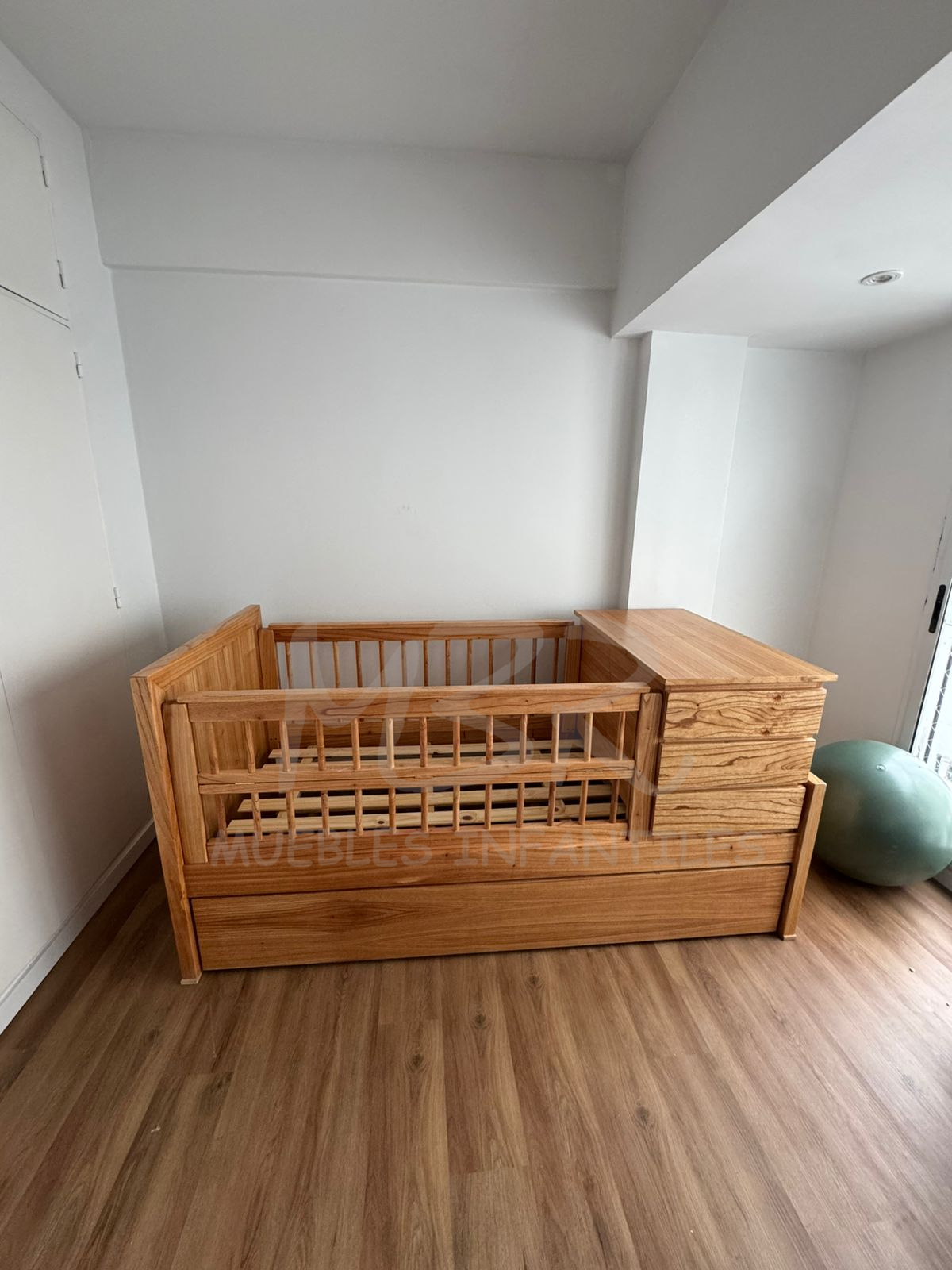 Utilizamos guías telescópicas de 24k en los cajoncitos, aptas para un uso cotidiano y soportar bastante peso🙏🏻. Además, cuenta con una baranda rebatible que se dobla a la mitad para no forzar tanto la espalda al acostar a tu bebé (si no te gusta la baranda rebatible podes pedirla enteriza)