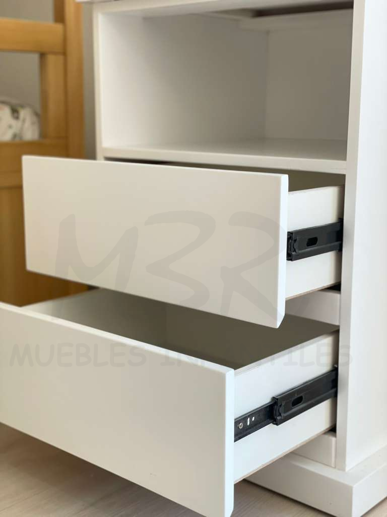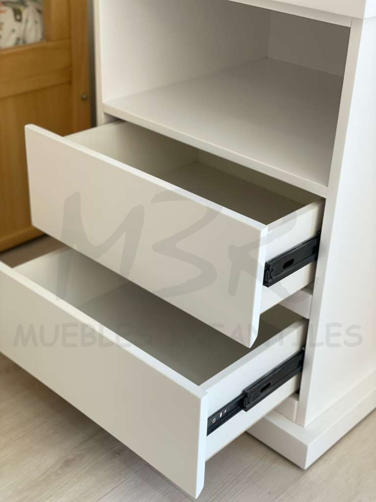Cuenta con 2 cajones con guías telescópicas y un estante lo cual permite una comodidad mayor de guardado/apoyo.