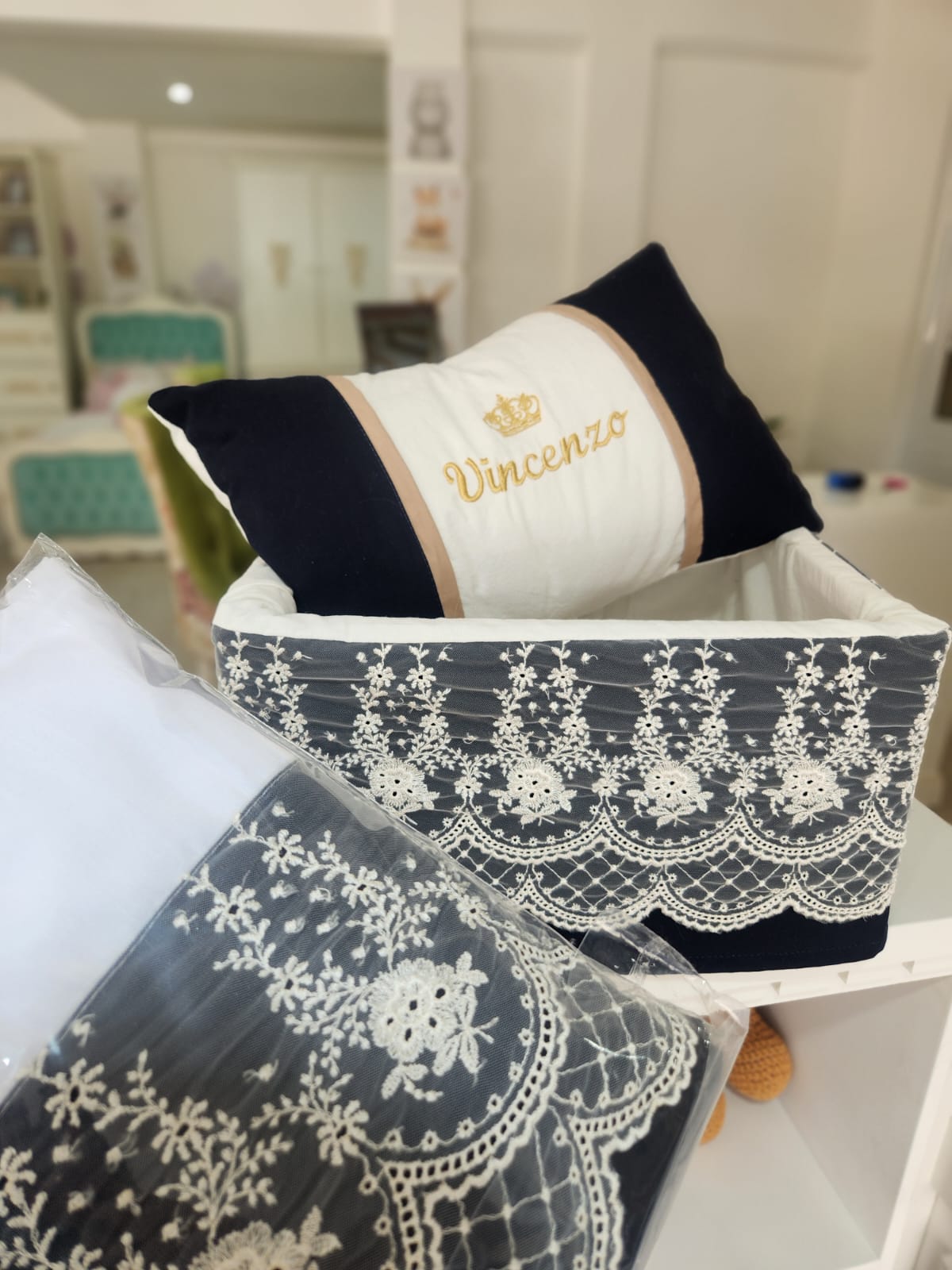 - porta cosméticos de madera forrado
