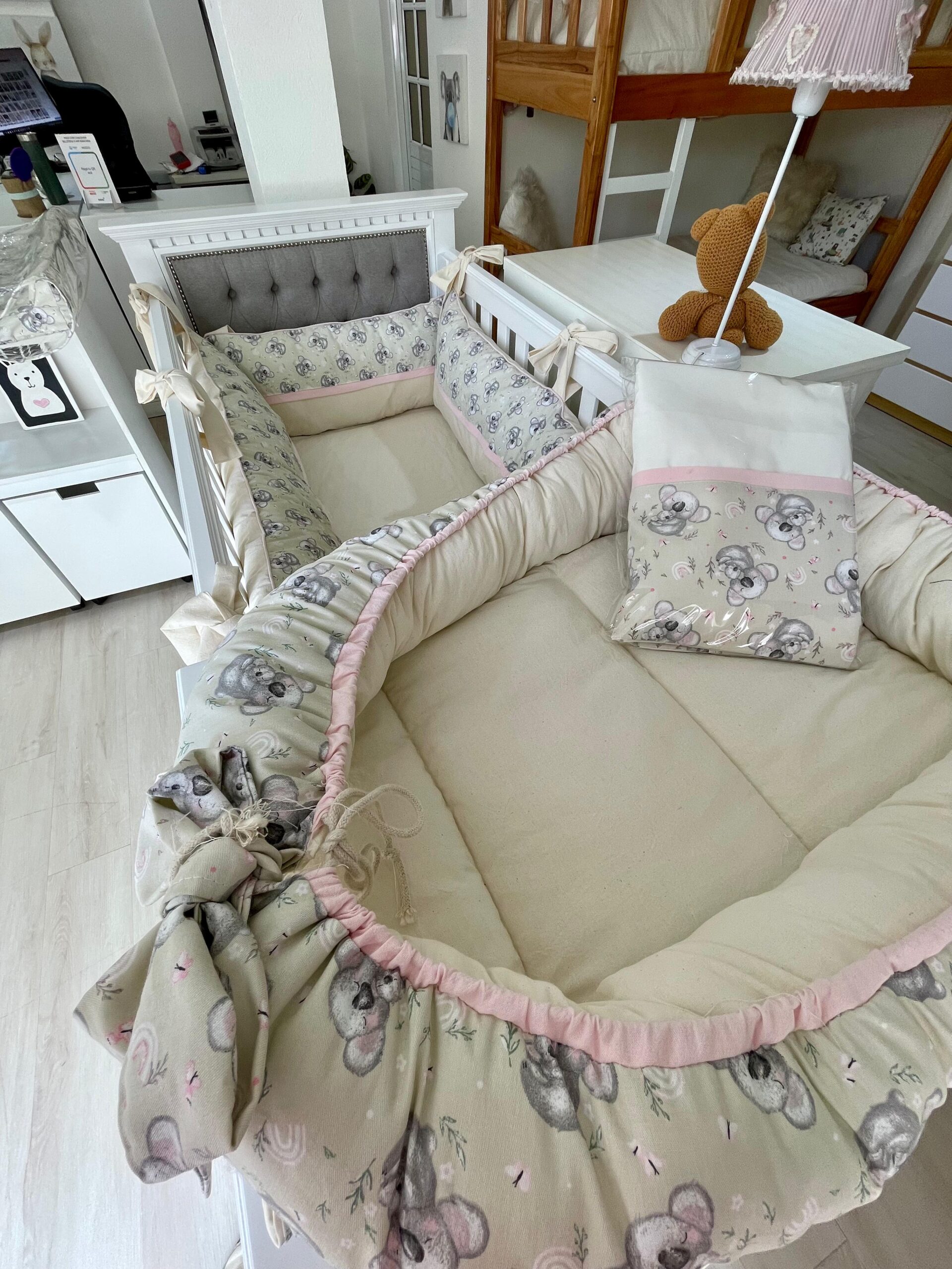 - juego de sabanitas, ajustable, sabana encimera y una funda de almohadita